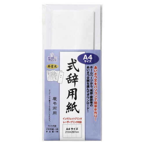 ●印刷も手書きも可能! 慶弔両用の式辞用紙 ●セット内容(1パックあたり)/用紙5枚、多当紙1枚 ●インクジェット・レーザープリンタ・手書き対応